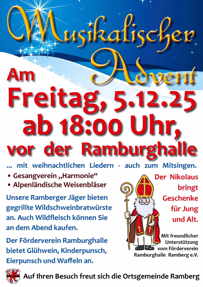 Am 22. November findet in der Ramburghalle die vorweihnachtliche Adventsausstellung von 13:00 Uhr bis 20:00 Uhr statt. Erleben Sie gemütliche Stunden beim Bestaunen und Kaufen kunsthandwerklicher Artikel von Ramberger Künstlern. Für Kinder wird von 15:00 bis 17:00 Uhr wieder Basteln angeboten. Für Speisen und Getränke ist gesorgt und es gibt …